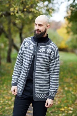 Vestfoldkofte Herre - strikkes i Rauma Finullgarn.