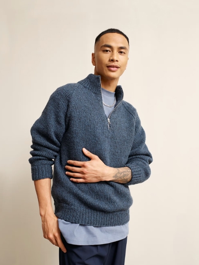 405-2 Fjelljakke i Finull herre Mørk Petrol melert Strikkepakke
