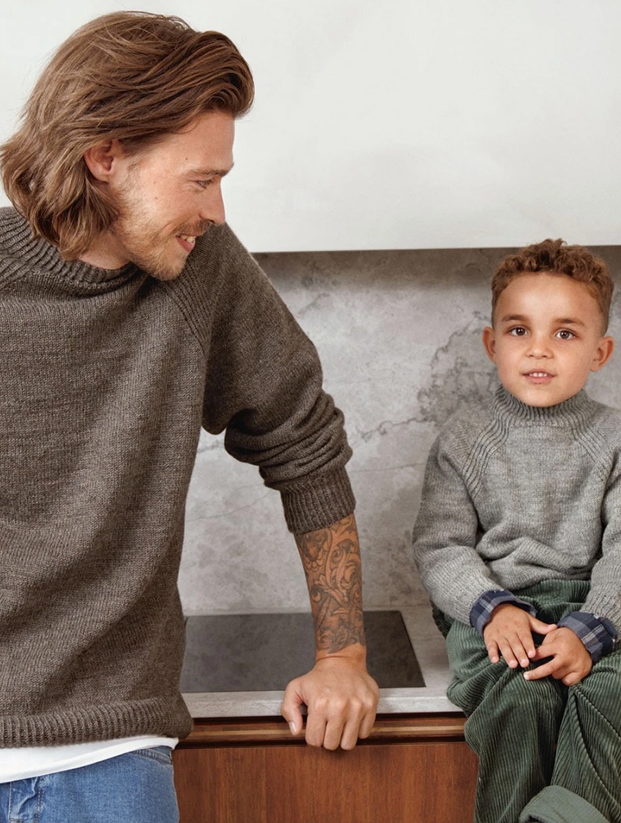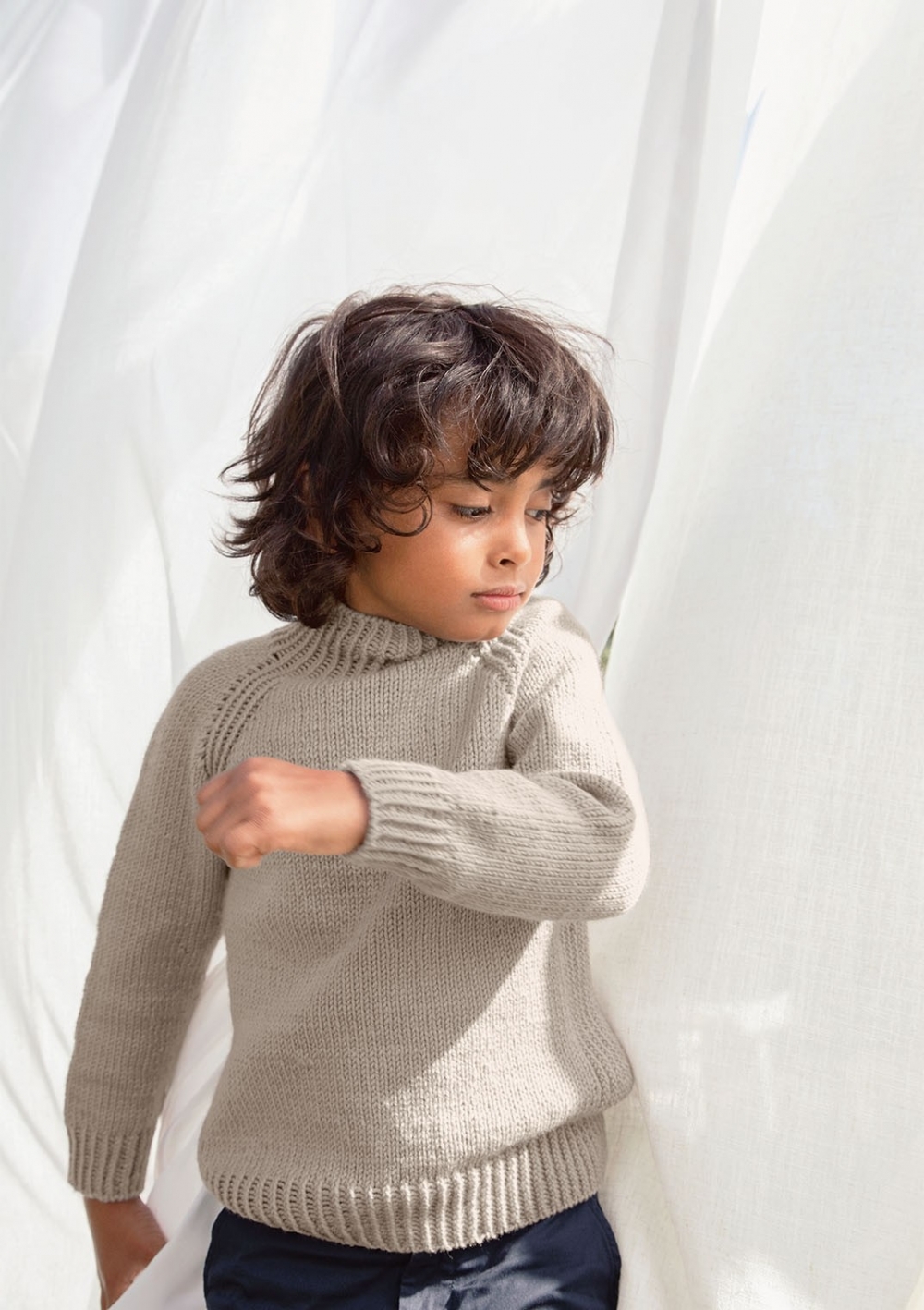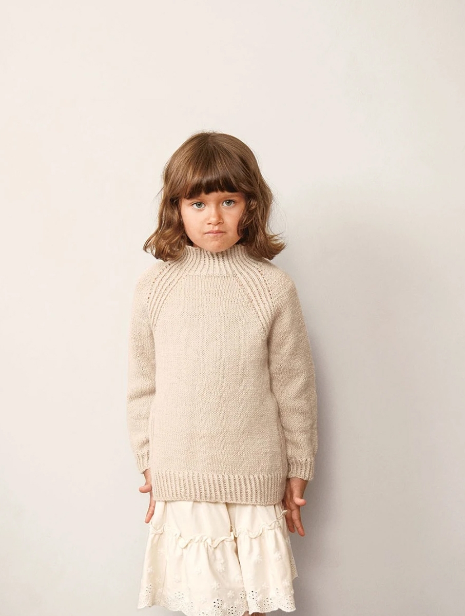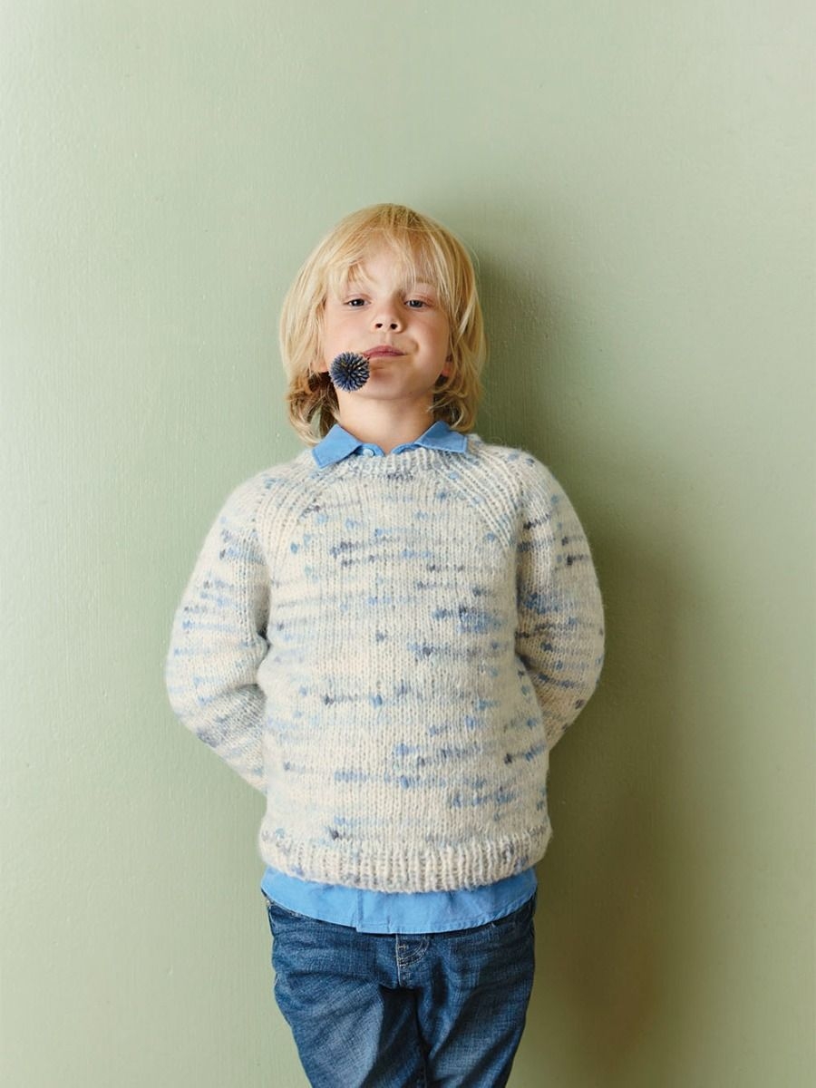 Strikkepakke med garn og strikkeoppskrift på ISLENDER til barn med raglan, strikket i Smart.