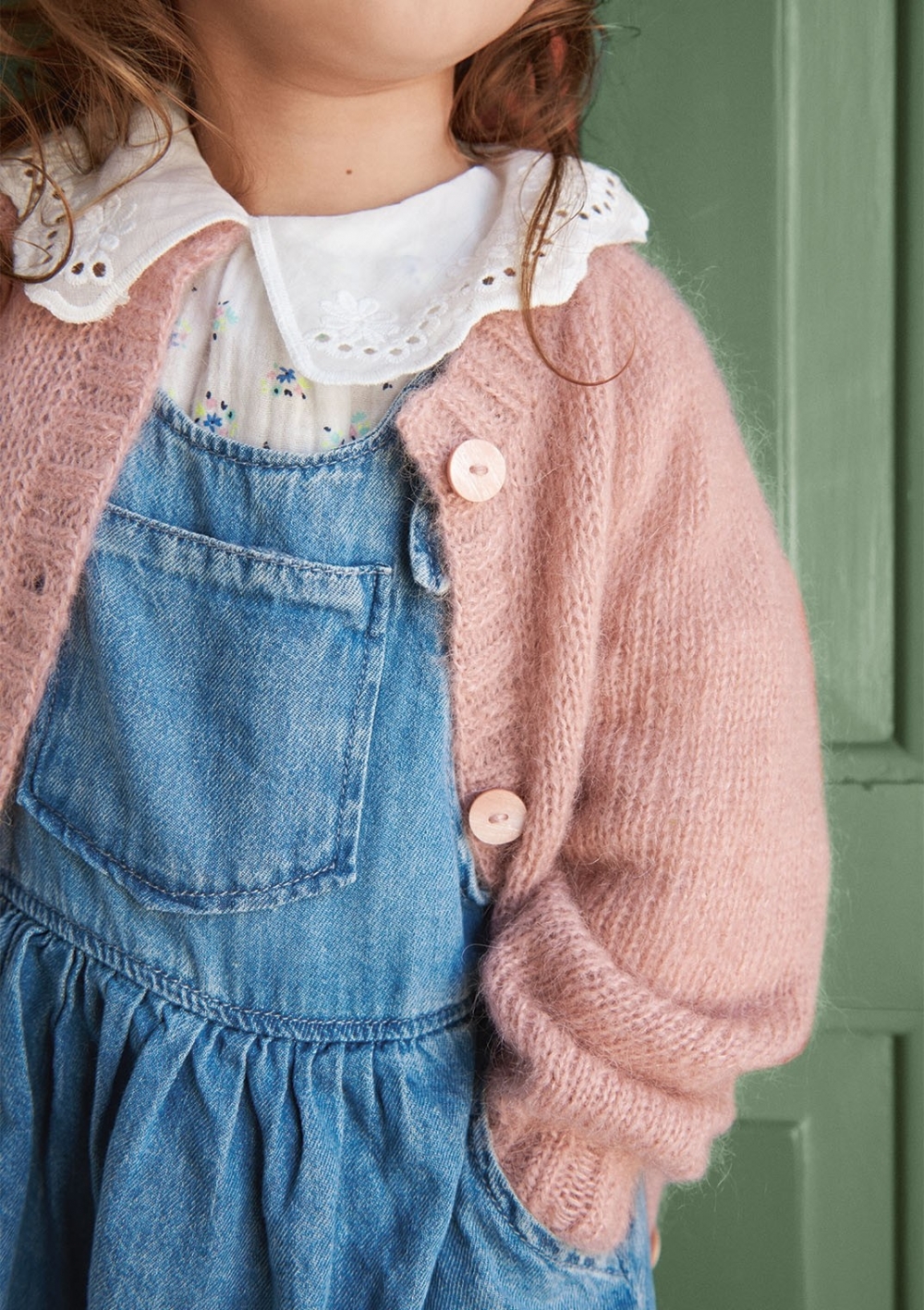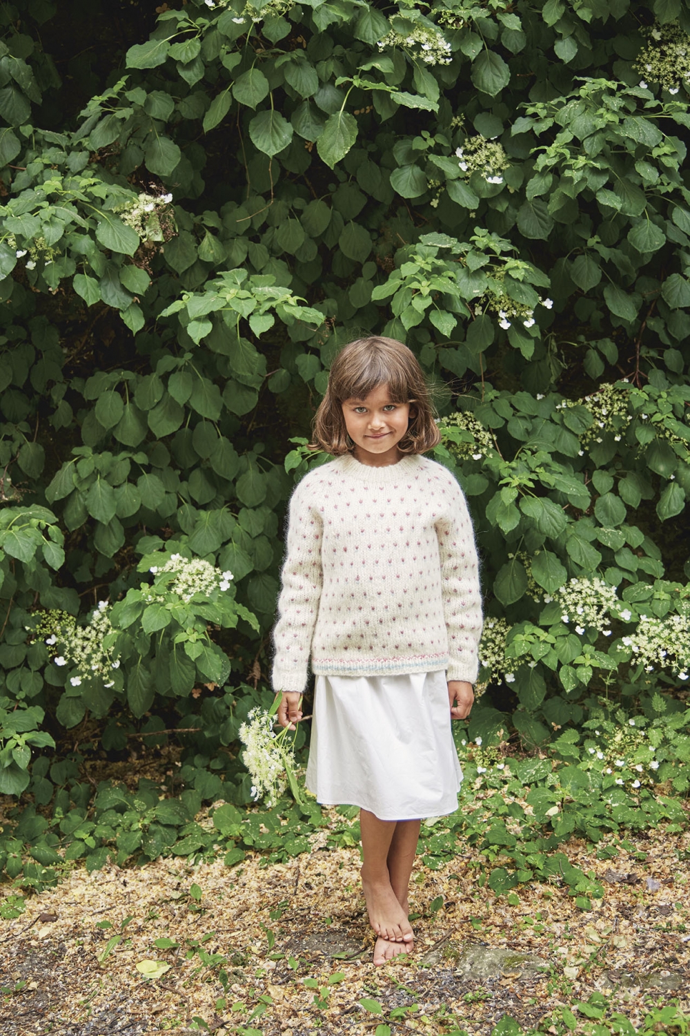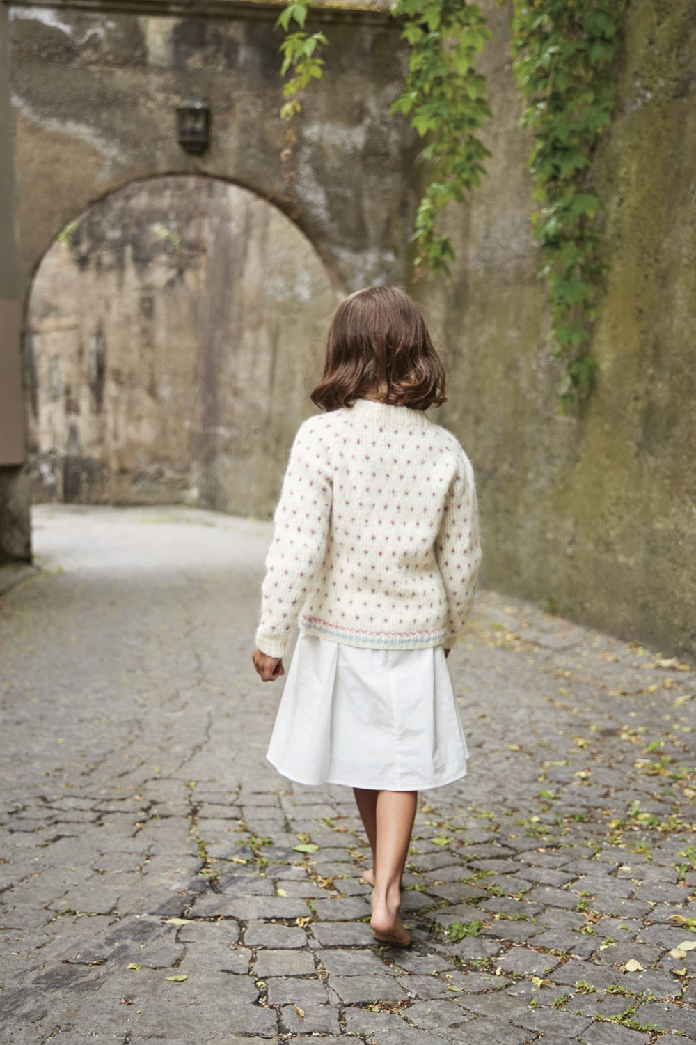 2110-5 Juni jakke barn Tynn Silk Mohair Pudder Strikkepakke