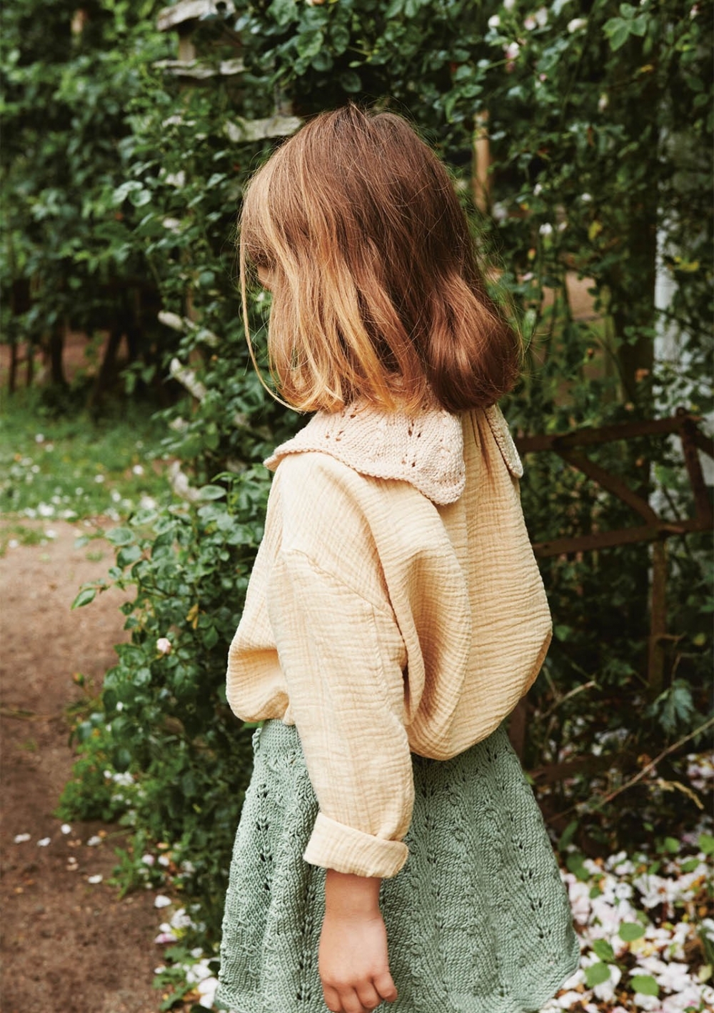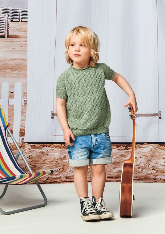 2105-5 Lille rille t-skjorte Mandarin Petit Støvet lys grønn 9041 Strikkepakke