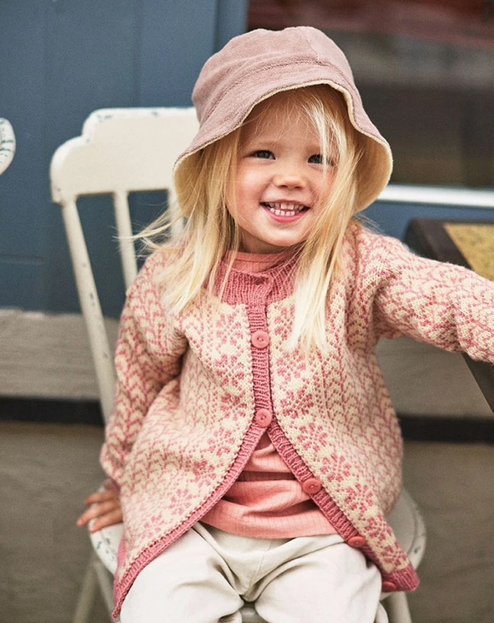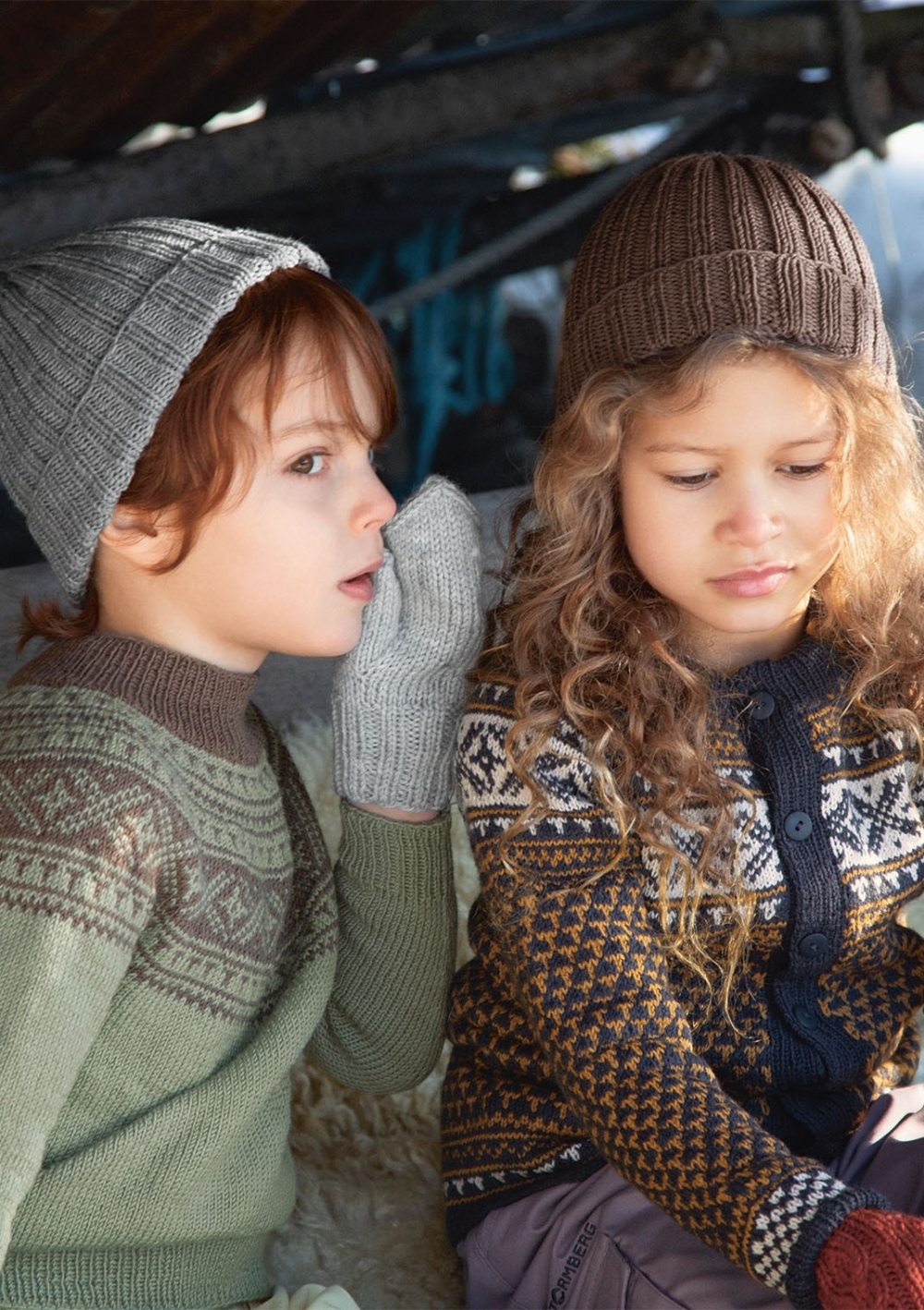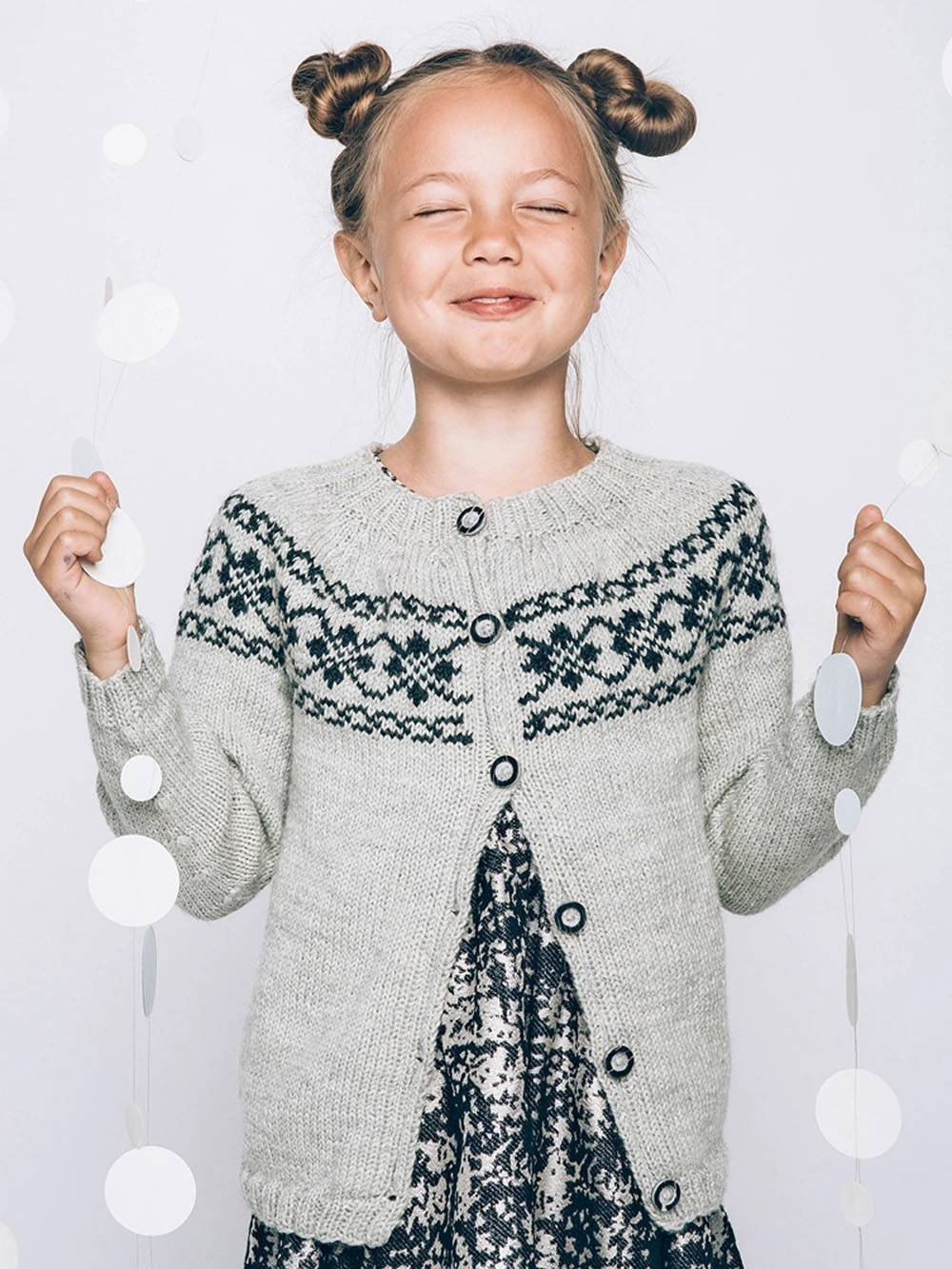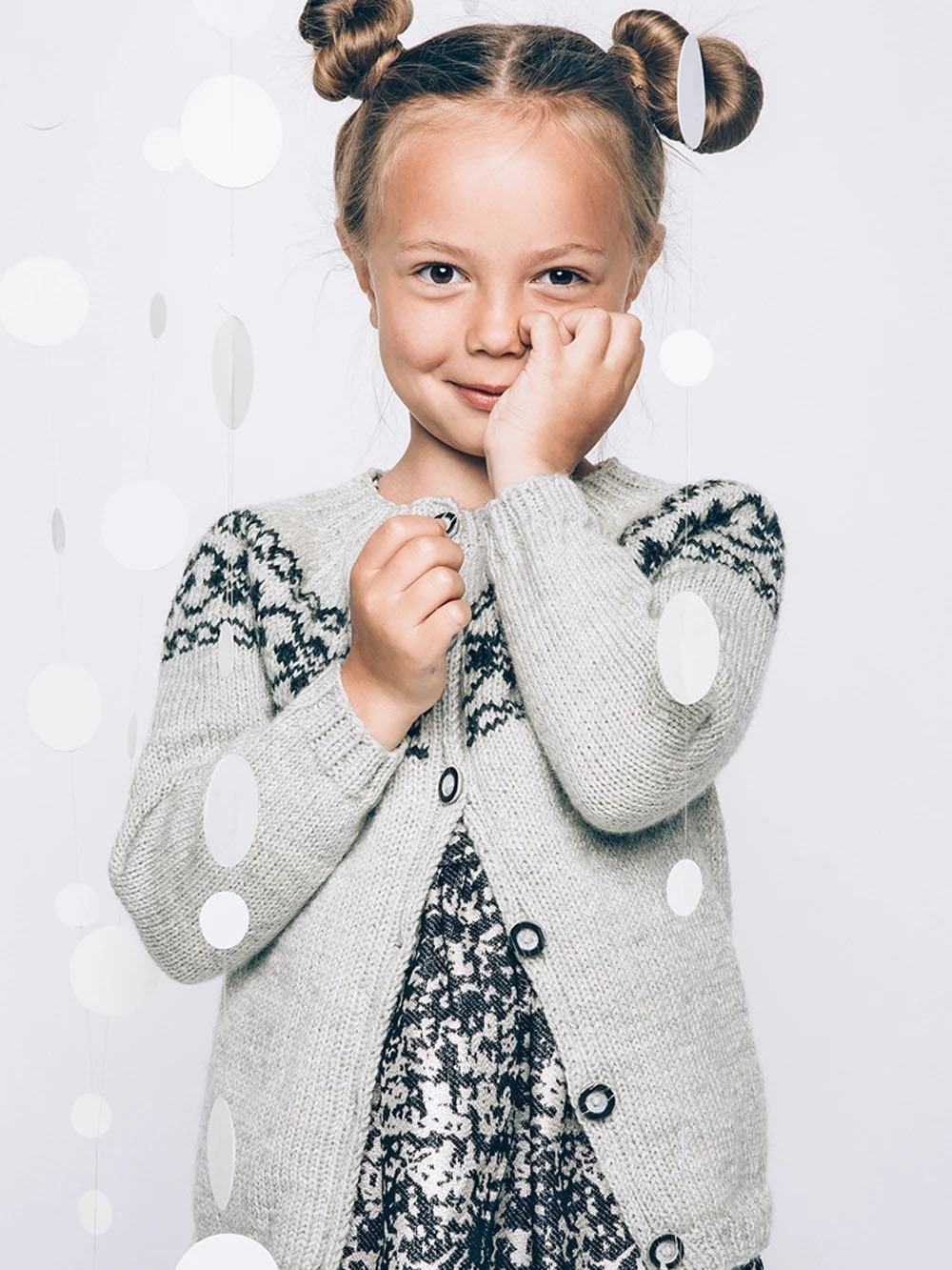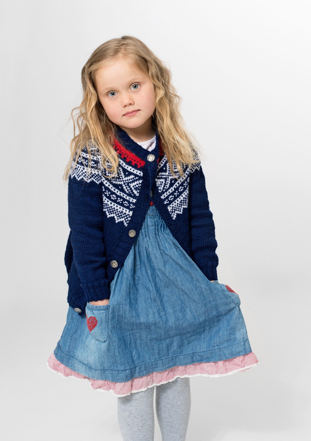 Strikkepakke på Fana kofte til barn strikket i Mini Alpakka. 2-12 år. Strikkepakke med garn og oppskriftshefte (tema 38)