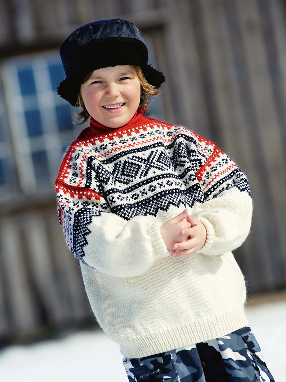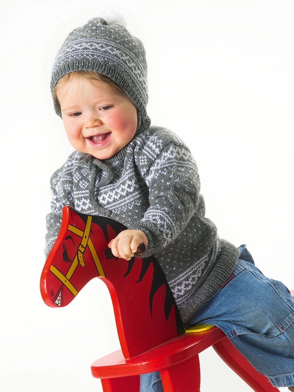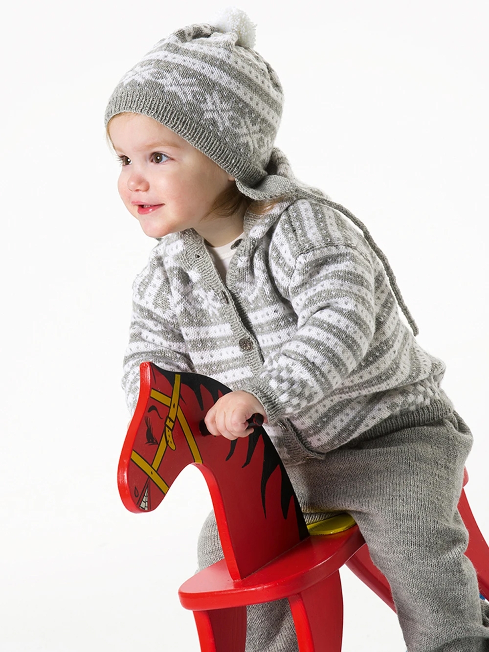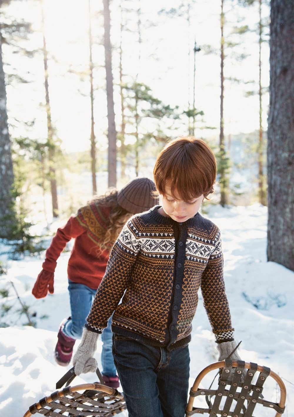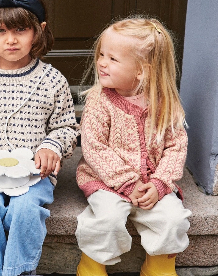 Strikkepakke på Fana kofte til barn strikket i Mini Alpakka. 2-12 år. Strikkepakke med garn og oppskriftshefte (tema 38)