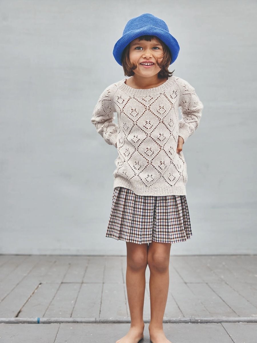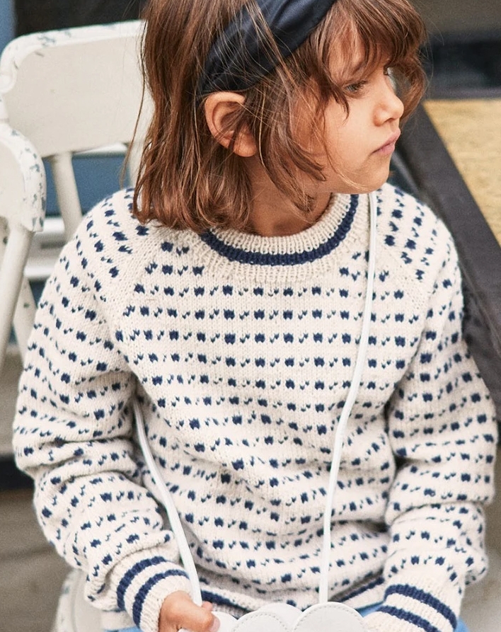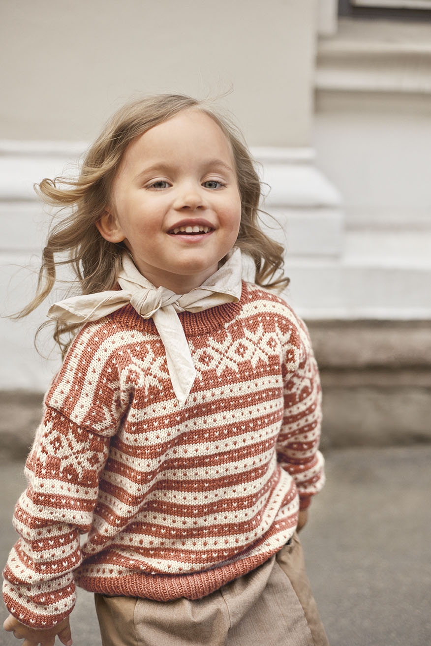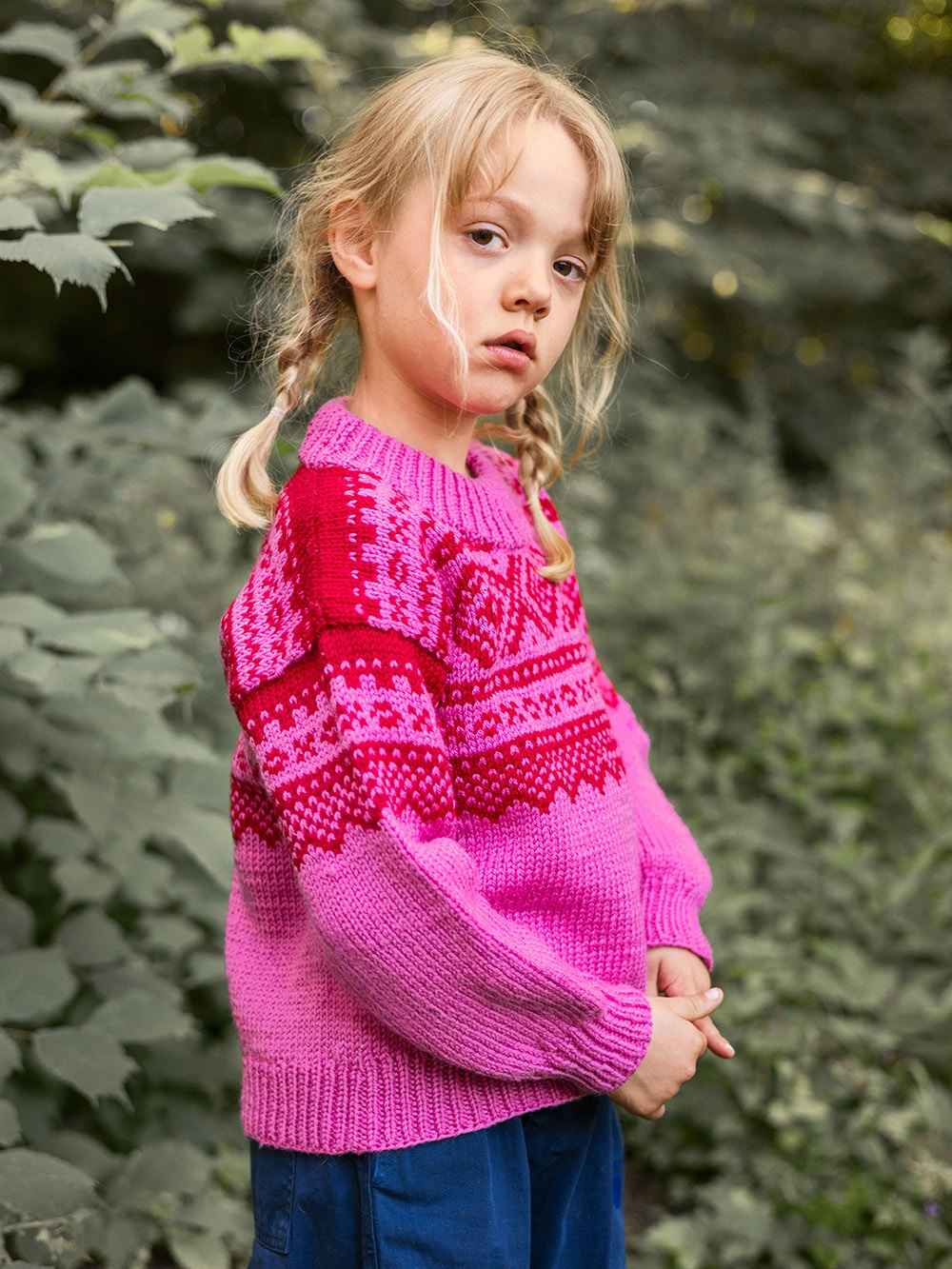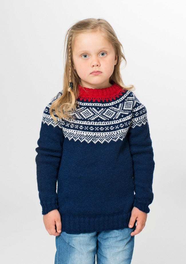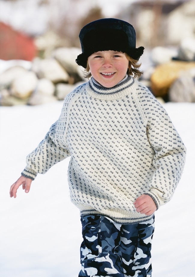 Strikkepakke med garn og strikkeoppskrift (Tema10) på ISLENDER til barn med isydde ermer i SMART fra Sandnes Garn.