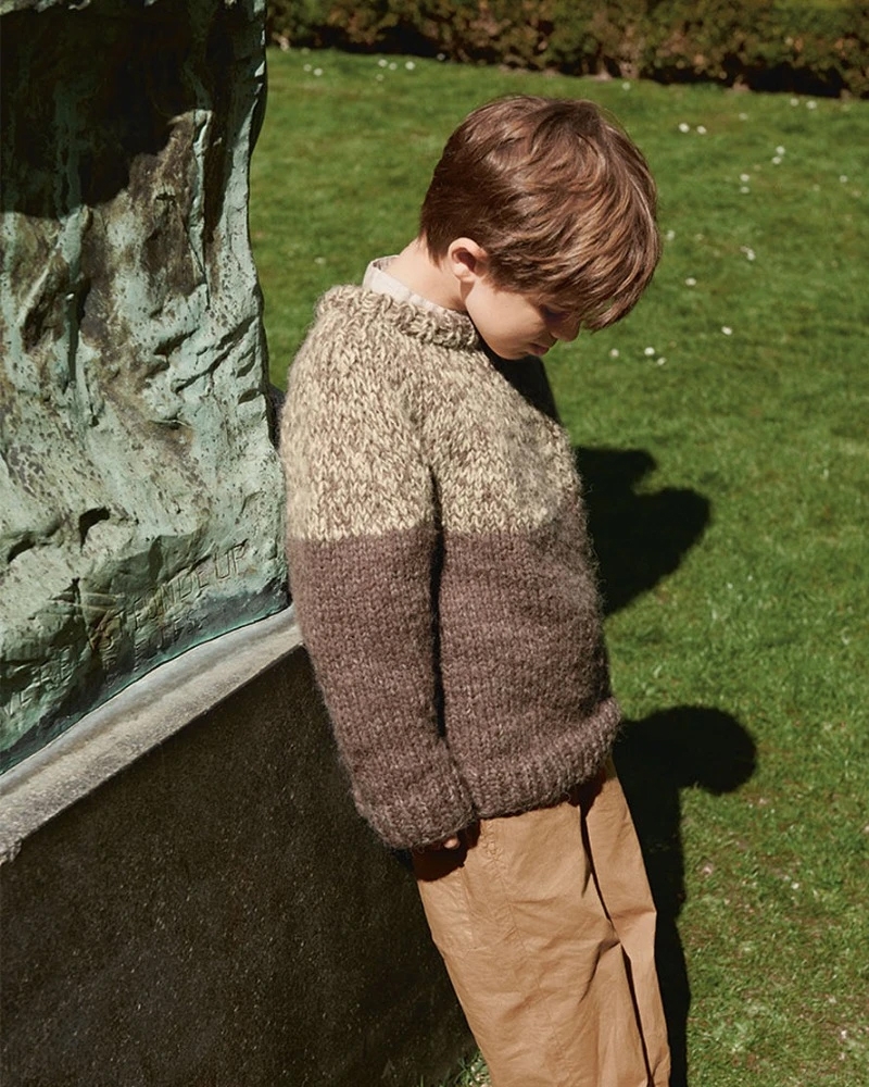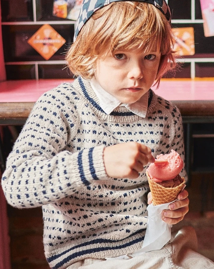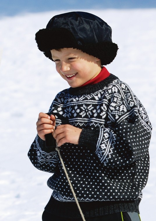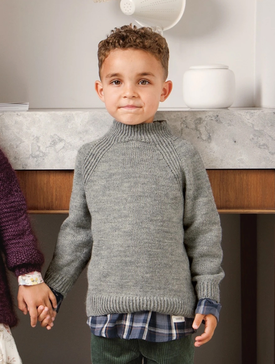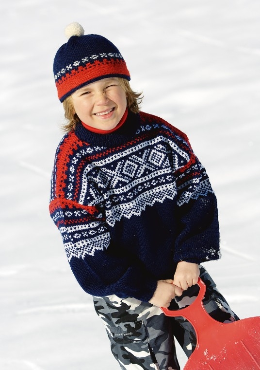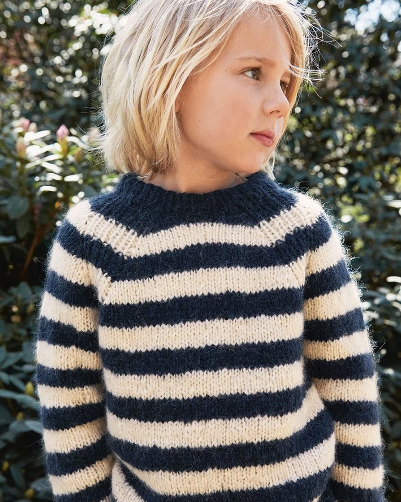 T10-2 Marius genser barn med isydde ermer Smart Strikkepakke Sandnes garn