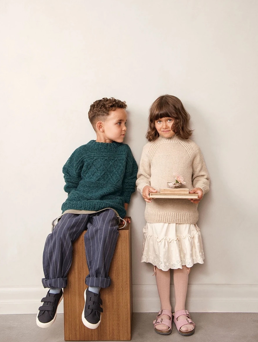 Genser til barn strikkes i Duo fra Sandnes garn, ovenfra og ned. Inkl. garn og oppskrift.