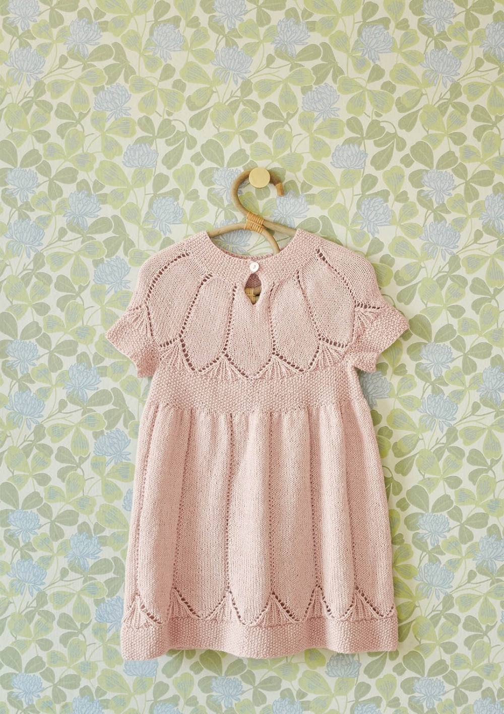 Puttykjole med rundfelling - strikket i Babyull Lanett (gratis oppskrift følger med)