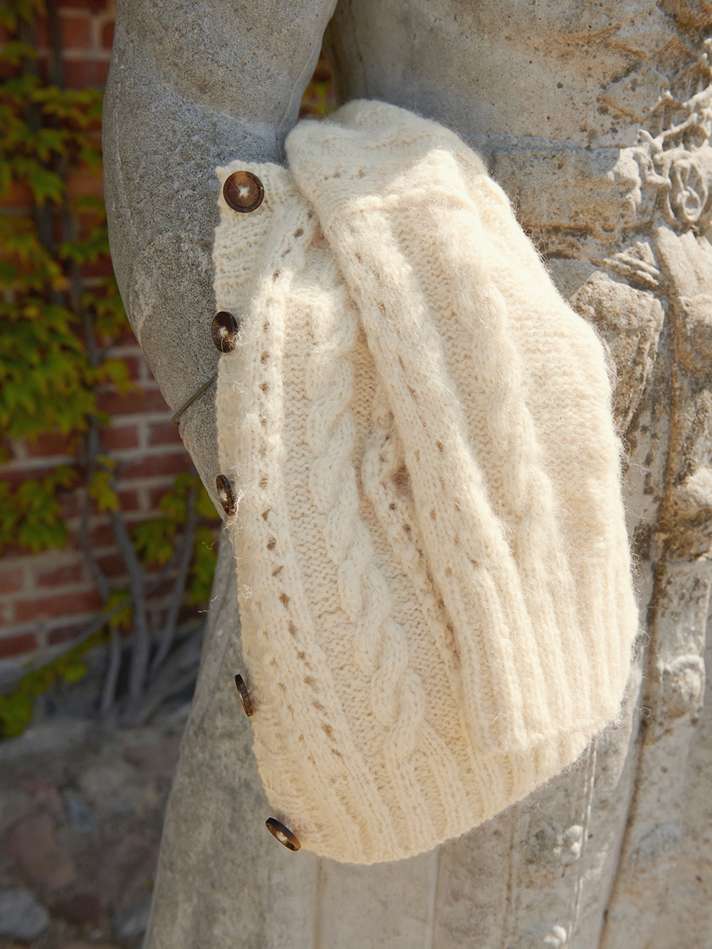 Strikket i Sisu. Dette er en strikkepakke. ”Marius” kofte med rundt bærestykke.
