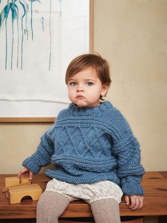 65-3 Blåklokkegenser 3 mnd - 12 år | Alpakka Silke | Strikkepakke Sandnes Garn