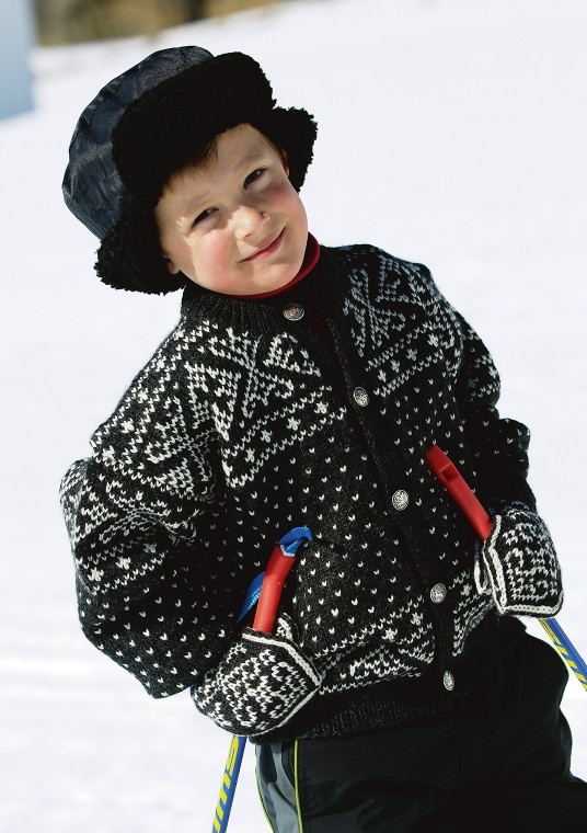 Marius kofte barn 34-6 Sisu Strikkepakke Sandnes Garn