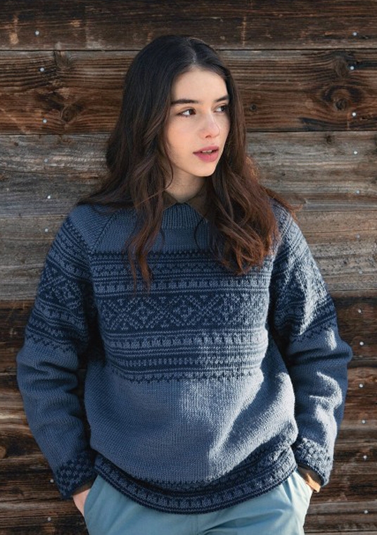 LeKnit Rosie Yoke Sweater Strikkepakke Peer Gynt og Tynn silk mohair