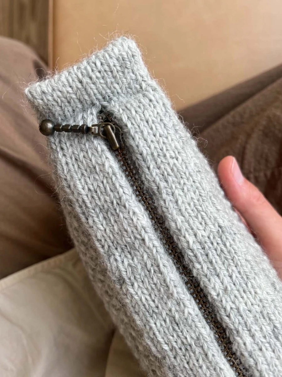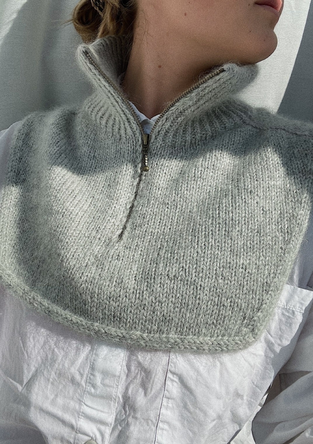 PetiteKnit – Enkeltoppskrift 104 – Hals med glidelås strikkes ovenfra og ned i Alpakka Ull og Tynn Silk Mohair. Oppskriften selges kun sammen med garn.
