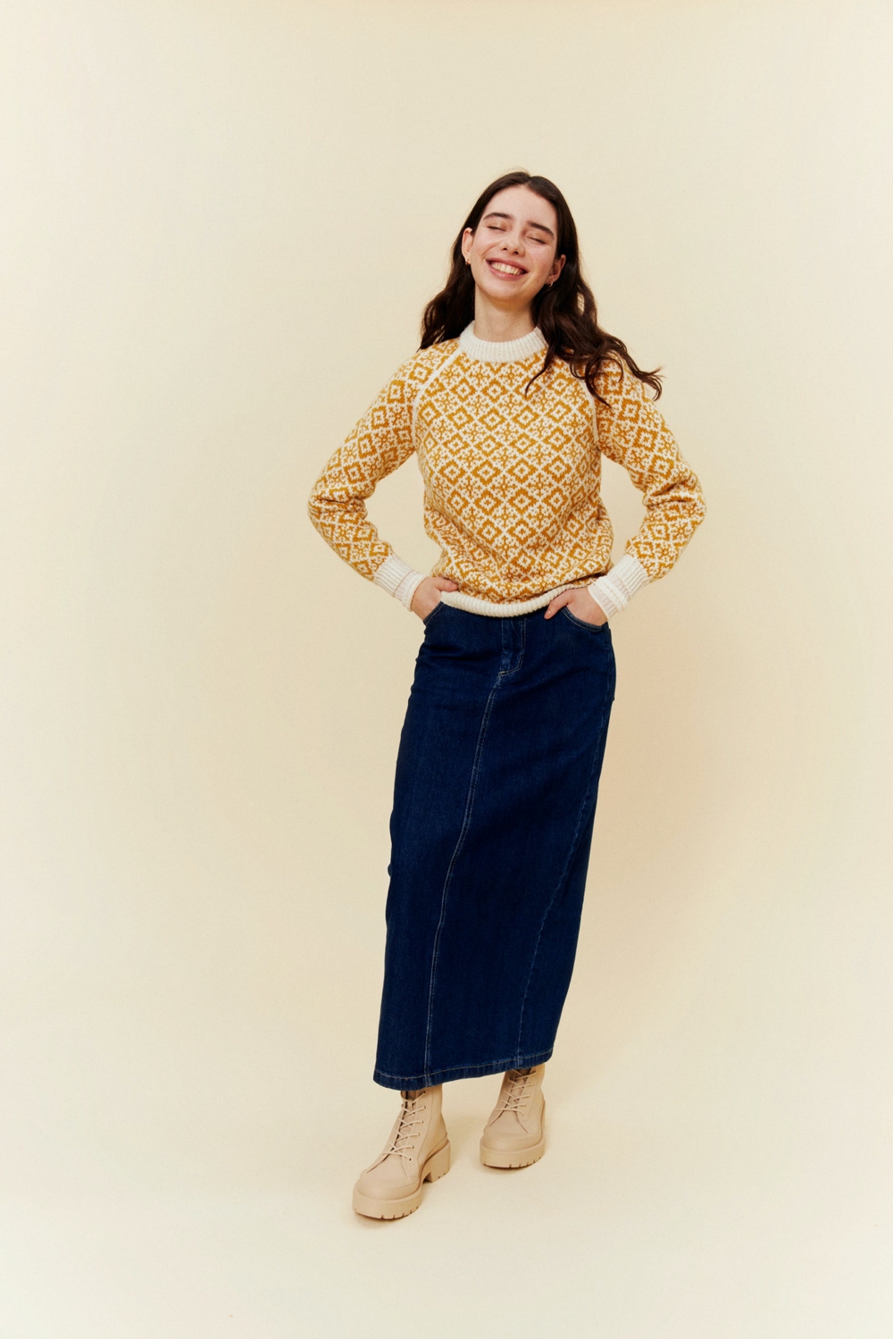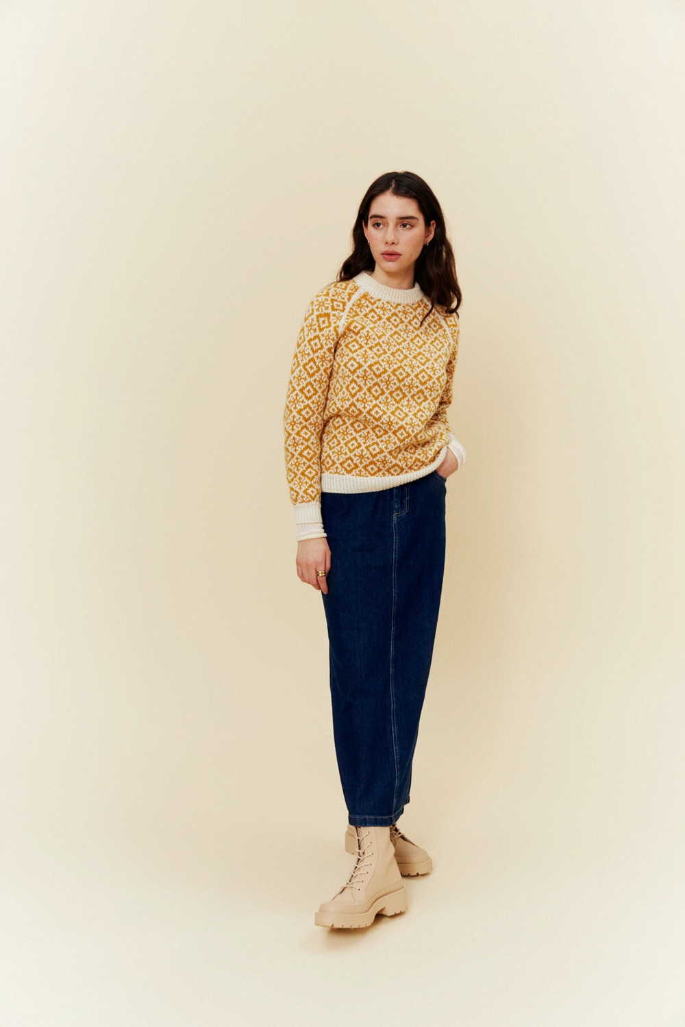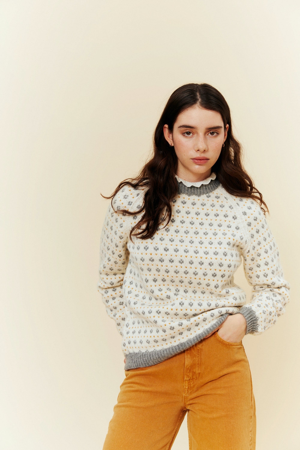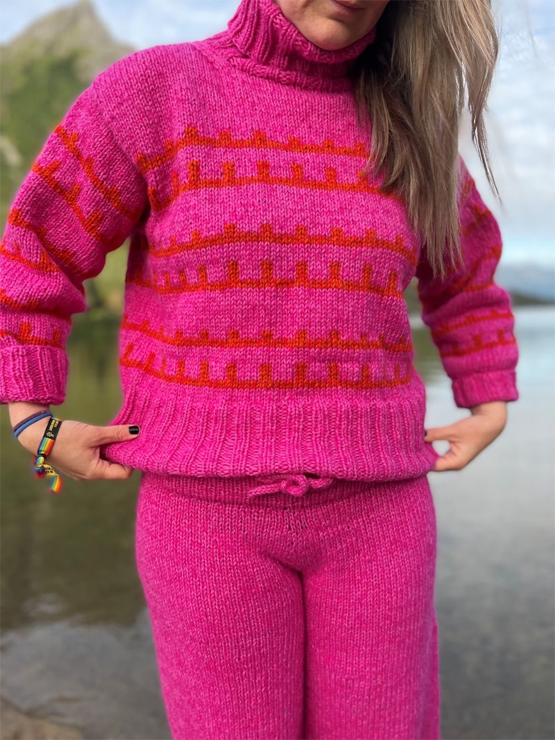 LeKnit Rosie Yoke Sweater Strikkepakke Peer Gynt og Tynn silk mohair