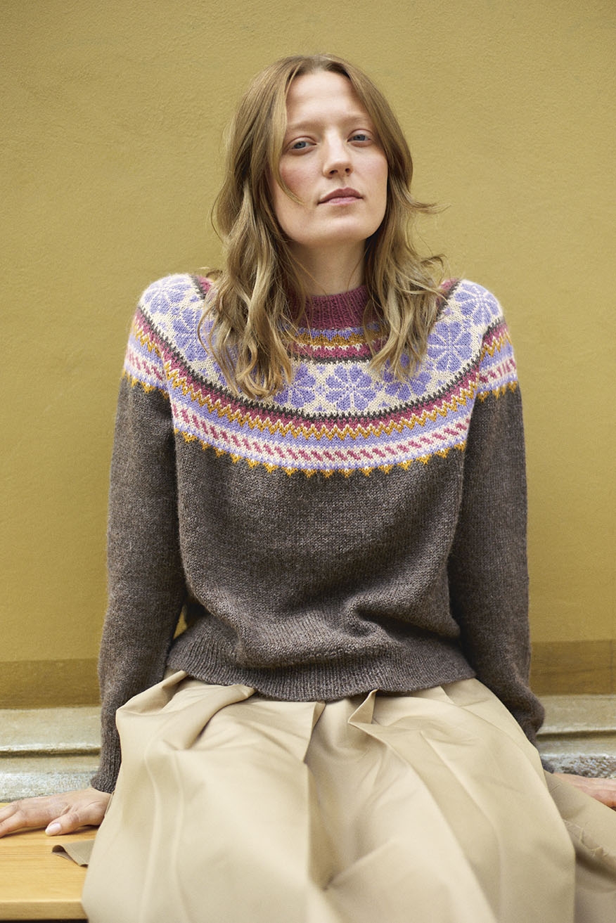 LeKnit Rosie Yoke Sweater Strikkepakke Peer Gynt og Tynn silk mohair