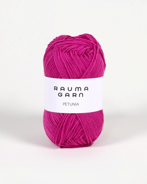 Petunia er et garn i 100% pima bomull, som er en av verdens fineste bomullsfibre. Det holder seg godt i bruk og kan vaskes i maskin. Petunia gir myke plagg som er behagelige å ha på. Petunia gjør seg godt både til plagg i sommergarderoben, og tilbehør som kurver, vesker og kluter. Egner seg til hekling.