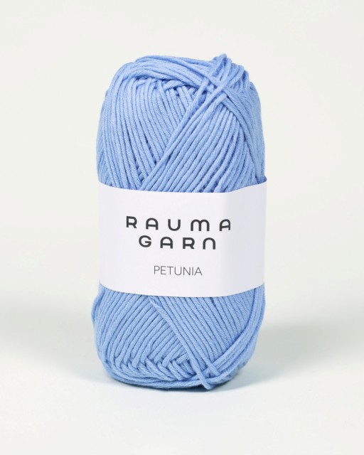 Petunia er et garn i 100% pima bomull, som er en av verdens fineste bomullsfibre. Det holder seg godt i bruk og kan vaskes i maskin. Petunia gir myke plagg som er behagelige å ha på. Petunia gjør seg godt både til plagg i sommergarderoben, og tilbehør som kurver, vesker og kluter. Egner seg til hekling.