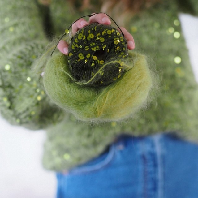 GARN: Bella fra Permin, 75 % mohair, 20% ull, 5% polyamide, 50 g = ca145 m.