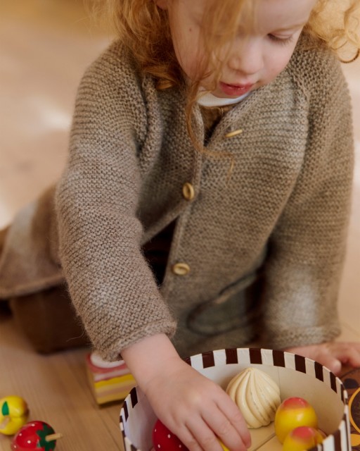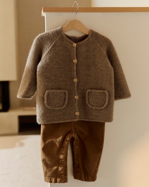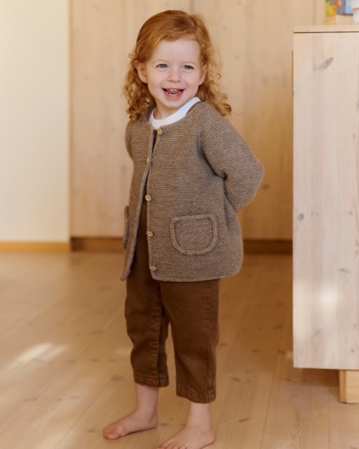 En lun og praktisk jakke med lommer og i-cord-kanter som passer godt for aktive barn! Bompijakken strikkes ovenfra og ned i Tumi, med raglanøkninger og rillestrikk som gir et mykt, fleksibelt plagg. Tumi er et garn som har ullens varme og alpakkaens mykhet, og egner seg godt til barn. Den romslige passformen gir god bevegelsesfrihet, og detaljene løfter uttrykket. En favoritt i hverdagsgarderoben!