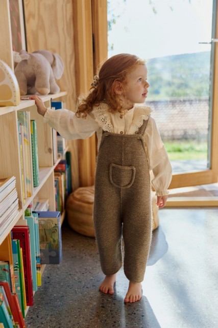 Bompibukse er en sjarmerende og funksjonell selebukse i Tumi, med god vidde og komfortabel passform. Tumi er et garn som har ullens varme og alpakkaens mykhet, og egner seg godt til barn. Den strikkes ovenfra og ned i rillestrikk, og avsluttes med i-cord-kanter og en søt lomme foran. Knappelukking på selene gjør den enkel å tilpasse. Perfekt alene eller sammen med Bompijakken som et komplett sett!