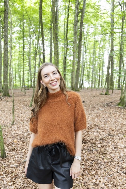rundpinne nedenfra og opp. Ved ermehullene blir bolen og de