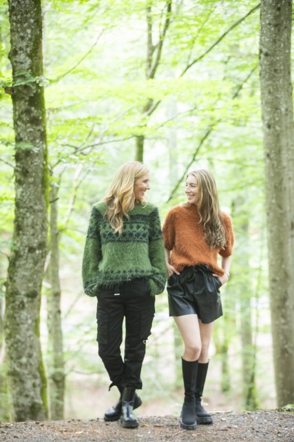 raglanfellinger på bærestykket. Til slutt strikkes en høy halskant.