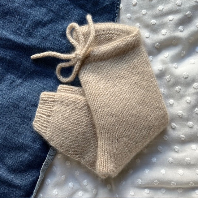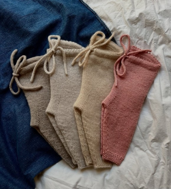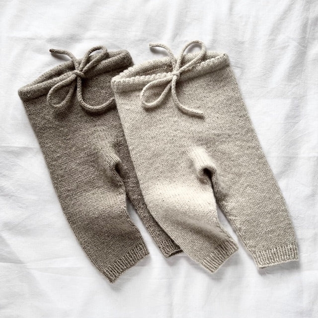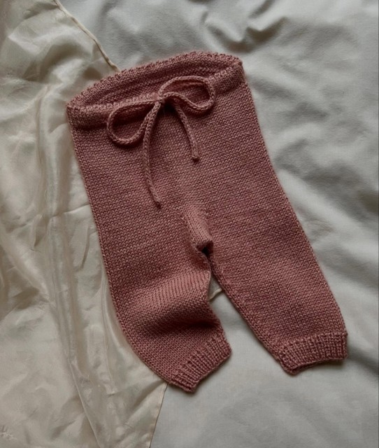 En klassisk bukse i glattstrikk med knyting i livet. En myk strikkebukse er noe av det mest komfortable den lille kan ha på seg.
