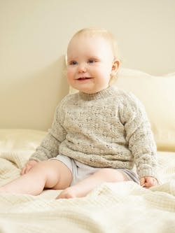 Genseren er strikket nedenfra og opp med raglanfellinger.