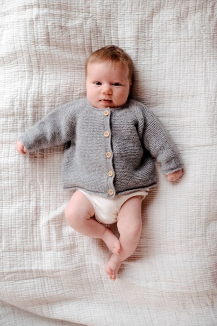 Jakken strikkes i Lun Merino, et mykt og luftig kardegarn av merinoull. Maskene legger seg jevnt og pent, og rillestrukturen fremheves uten at plagget blir tungt eller kompakt. På kroppen er følelsen lun, nær og behagelig. Lun Merino gir varme uten tyngde, samtidig som det er skånsomt mot huden. Resultatet er mykt, komfortabelt og vakkert.