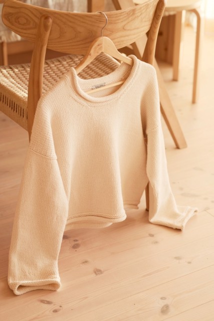 Oppskrifter fra Rauma selges kun sammen med garn, minst 4 nøster. Emina sommergenser er strikket i Rauma Tjukk bomull.
