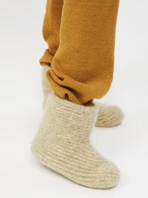 Disse tovede tøflene er høye, tykke og varme. Med sitt brede skaft, er de lette å kippe av og på selv om de er høye. Tøflene strikkes med dobbelt garn i rillestrikk, frem og tilbake, nedenfra og opp. Oppleggskanten er midt under, og avfellingen er toppen av tøffelen. Det felles midt i arbeidet for å skape formen midt oppå foten, før man fortsetter oppover til ønsket høyde. Tøflene maskes sammen midt under og sys sammen midt bak. Siden toves tøflene i vaskemaskin. Bruk gjerne opp restegarn i disse deilige tøflene!