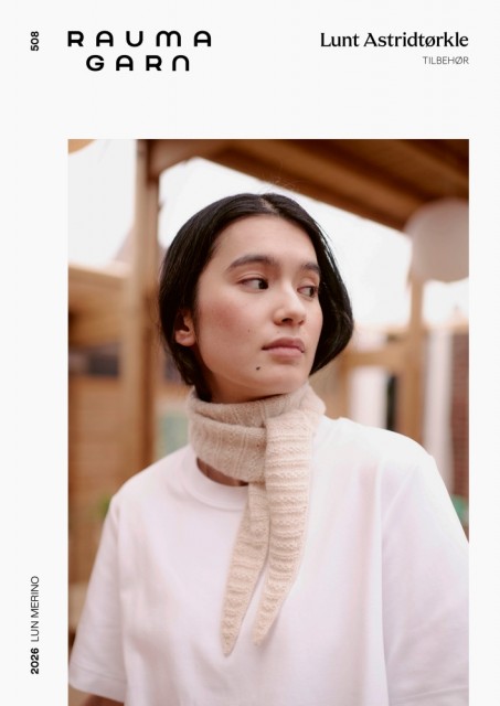 Lunt Astridtørkle er et gjennomtenkt og elegant tilbehør der struktur og materiale står i sentrum. Det er langt og smalt i formen, med enkle strukturer av rette og vrange masker – variert nok til å være spennende, men rolig nok til å gi flyt. Strikket i Lun Merino er det vært behagelig både mot huden og på pinnene.