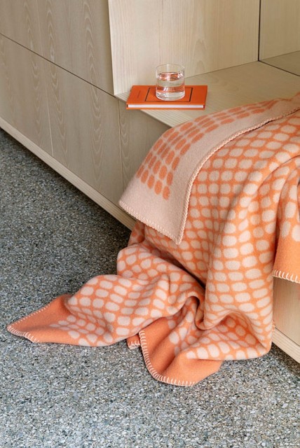 Selv om mønsteret er vevd inn i teppet ser det nesten ut som det er trykt på den myke ulloverflaten. Mønsteret gir assosiasjoner til klassiske trykkteknikker som sjablonger, silketrykk og blokktrykk.